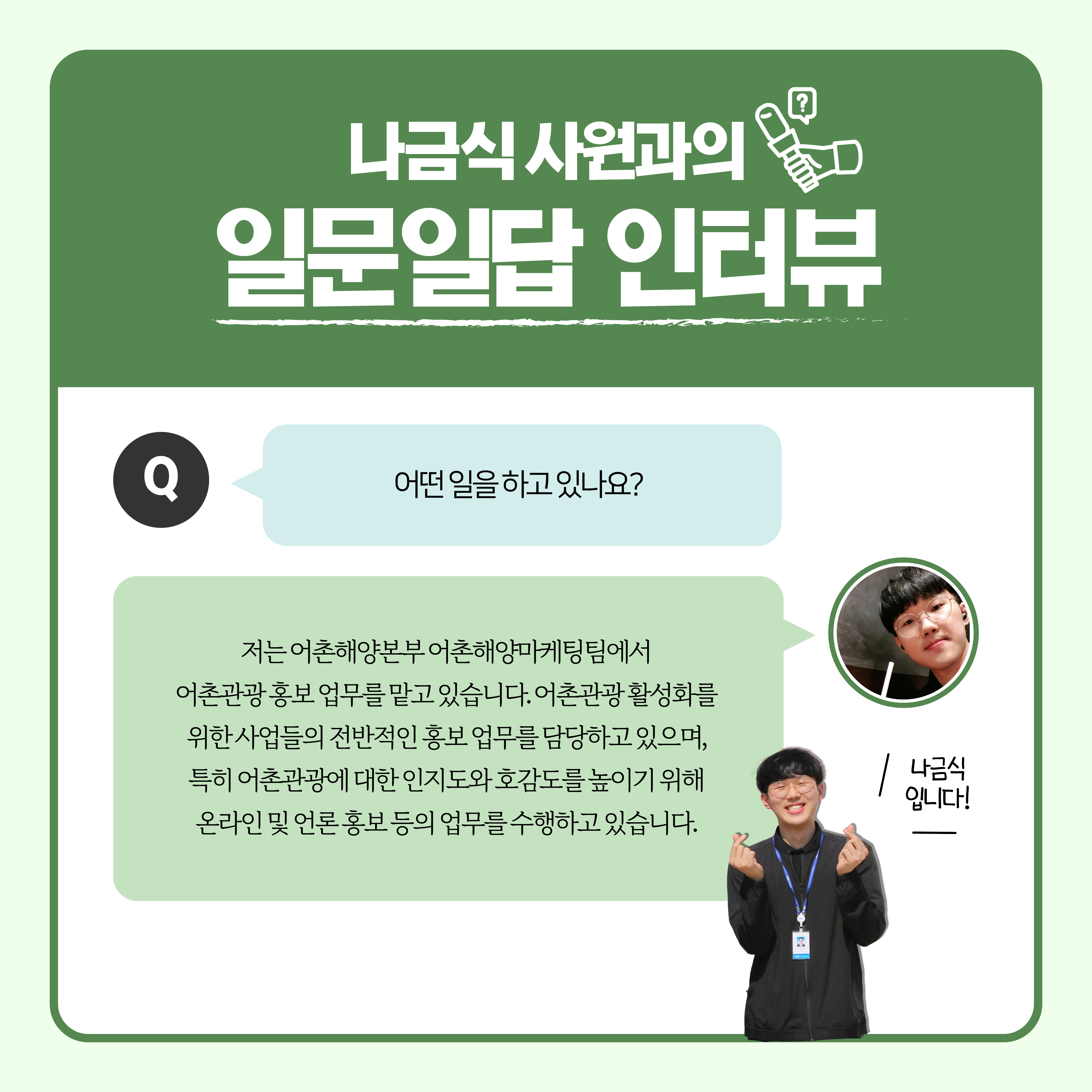 [본부별 신규직원 인터뷰] #5. 어촌해양본부 나금식 사원
